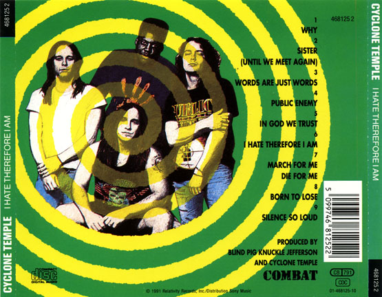 Cyclone Temple начали свою музыкальную карьеру в неблагоприятное время, когда трэш метал стал вызывать всё меньше интереса у слушателей, и гранж, который только появился в тот период, завоевал популярность в США. Первый альбом Cyclone Temple “I Hate Therefore I Am” увидел свет в 1991 году. Вскоре после этого, материнская компания Combat Records - Relativity Records – была выкуплена Sony BMG, после чего был закрыт и Combat Records.