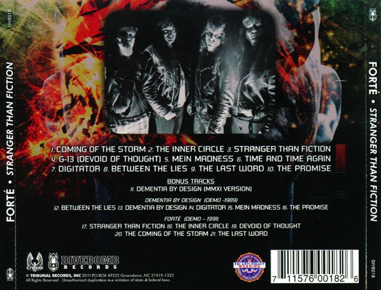 Расширенное переиздание дебютного альбома Power/Thrash формации из Оклахомы... Существующая с 1987 года, группа Forte за свою карьеру опубликовала пять полных альбомов. Данный диск был дебютом команды и был выпущен в 1992 году лейблом Massacre Records. В 2011 году фирма Divebomb Records предложила нам ...