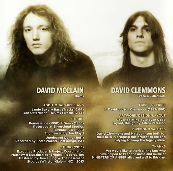 Компиляция с двумя демками. Ministers of Anger - Progressive/Thrash Metal Ваnd. Очень интересная в моем понимании группа. Я очень сожалею, что в их дискографии всего две демки и эта компиляция. Играют просто здорово!!!