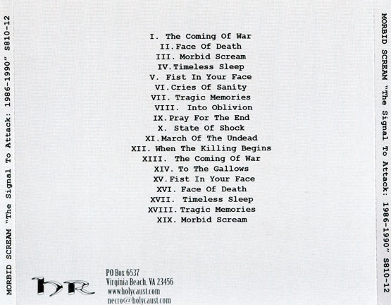 Компиляция творчества американской трэш-бригады... Основанная в 1986 году в штате Техас группа Morbid Scream просуществовала недолго,записав две демо-ленты в 1987 и 1988 годах.В 1990 году музыканты сменили название на The Morbid и записали последнее демо.В 2007 фирмой Tarot Productions выпущен этот ди ...