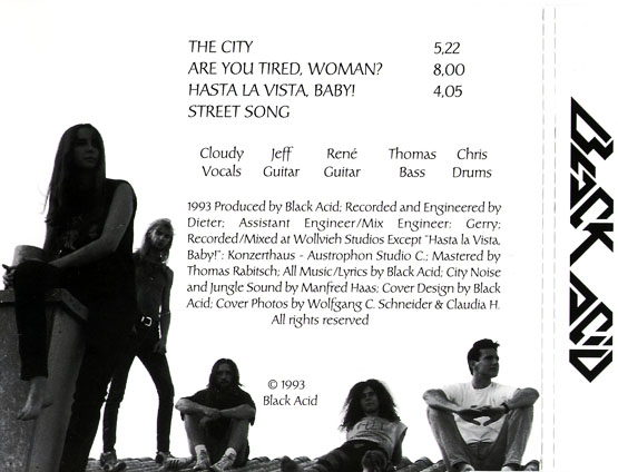 Black Acid были одной из лучших female fronted метал групп в мире.. На дебютной епишке австрийский коллектив продемонстрировал невероятное.. На диске нашлось место и грубой трешевой агрессии a-la Holy Moses и более мелодичному варианту спид треша наподобие Ice Age, Sentiniel Beast, Haven и даже фламенко.. По настоящему сильный материал!